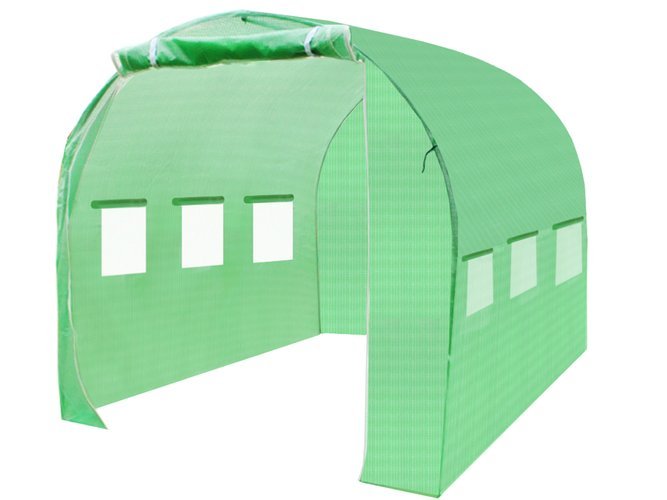 140g / m² FÓLIE S VLOŽENOU PE SÍŤOVINOU - voděodolná a odolná vůči UV záření, fólie je silná, pevná a není náchylná k roztahování. Použití fólie urychluje růst rostlin a zároveň chrání před škodlivými povětrnostními vlivy, poskytuje plnou difuzi světla a redukuje tmavé oblasti, díky čemuž je skleník rovnoměrně osluněn. Na konci sezóny se doporučuje tunel vysušit a umístit do suché místnosti.