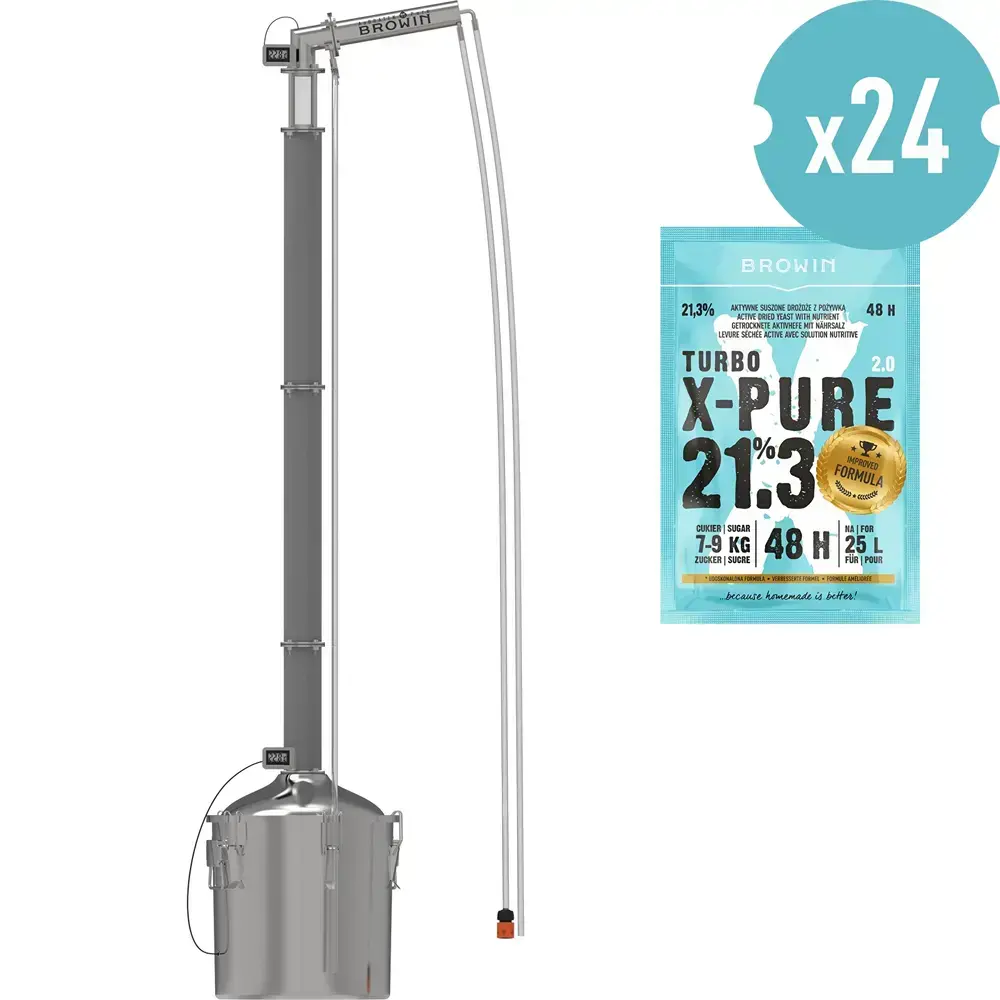 Dočasně je destilátor k dispozici v sadě se skvělým bonusem - až 24 sáčků vynikajících kvasnic Turbo X-Pure 21,3% 48 hodin zdarma! Vyplatí se využít této příležitosti co nejdříve!