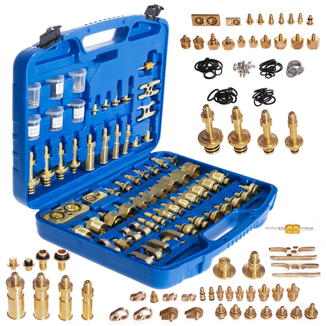 Vzhledem k množství adaptérů (78 kusů) v sadě existuje mnoho kombinací propojení prvků systému (výparník, kondenzátor, hadice klimatizace)
