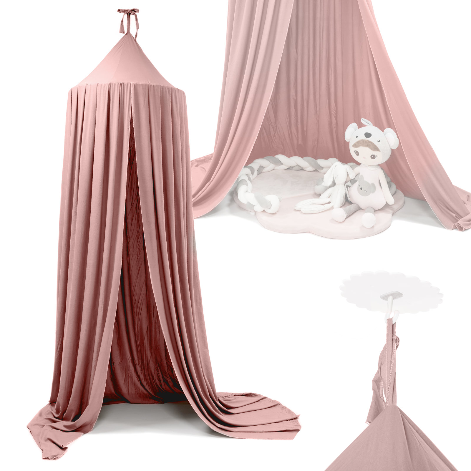 Baldachýn je také ideální jako stan. Bude to útulný úkryt, kde najdou útočiště plyšoví kamarádi, oblíbená autíčka, panenky nebo figurky. Bude to také ideální místo k odpočinku, uklidnění a společnému čtení knihy.