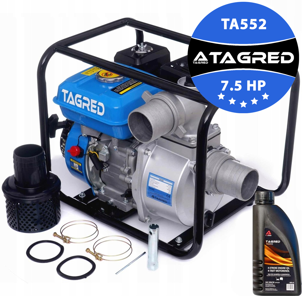 Spalovací motorové čerpadlo TAGRED je ideální zařízení pro těžkou práci! Velmi odolné čerpadlo, které splňuje přísné bezpečnostní normy, je nepostradatelné pro odčerpávání vody v místech, kde není přístup k elektřině. Hodí se např. pro stavební práce, pomůže při velkých katastrofách typu povodně. Vysoký výkon motoru až 7,5 HP! se promítá do účinnosti čerpání: 60000 l/h. Naše čerpadla jsou nepostradatelná pro přečerpávání čisté i špinavé vody (zavlažování polí a luk, přečerpávání zatopených místností, vodních nádrží, stavebních výkopů atd.). Vysoká kvalita provedení, ověřená konstrukce a vysoký výkon motoru zaručují spokojenost s provozem zařízení. Motorové čerpadlo má systém low vibration.