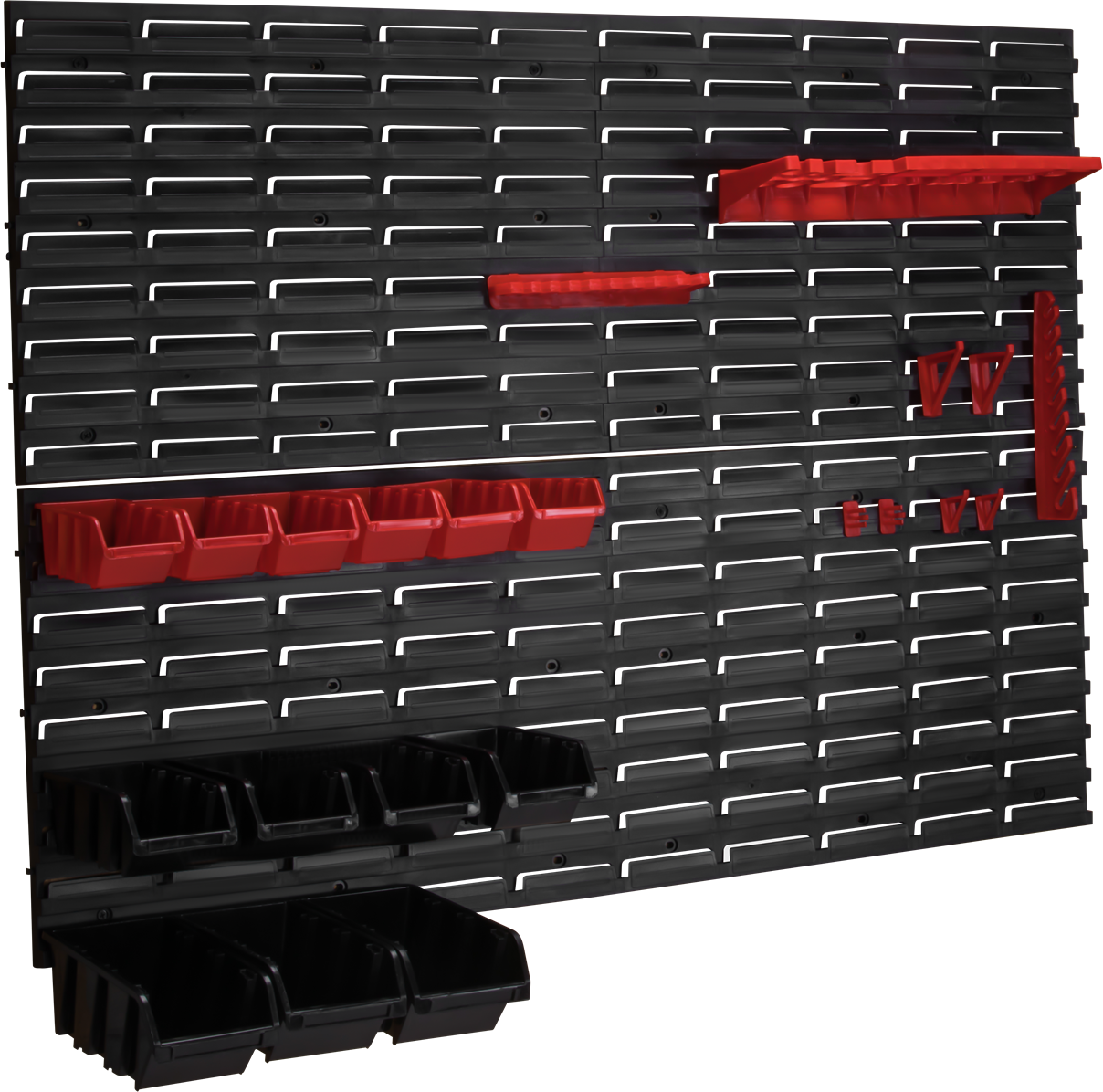 DÍLENSKÁ DESKA 115X78CM+PŘÍSLUŠENSTVÍ KD11863 KD11863 je funkční a robustní dílenská deska navržená pro profesionály a kutily, kteří oceňují pořádek a rychlý přístup k nářadí. Díky sadě 4 nástěnných desek a až 76 kusům příslušenství je organizace pracovního prostoru velmi jednoduchá. Odolná konstrukce, rozmanité nádoby a držáky umožňují pohodlné uložení šroubováků, klíčů, ručního nářadí a dílenského příslušenství. Univerzální deska se skvěle hodí do garáže, dílny nebo na servisní stanoviště. VLASTNOSTI PRODUKTU ✅ Kompletní sada pro organizaci nářadí – 76 prvků ✅ 4 odolné zadní desky o celkových rozměrech 115x78 cm ✅ Skladovací nádoby různých velikostí pro drobné i větší prvky ✅ Speciální držáky na šroubováky, klíče a jiné nářadí ✅ Možnost libovolné konfigurace prvků na desce ✅ Zabírá málo místa – montáž na stěnu ✅ Estetické a ergonomické řešení pro každou dílnu ✅ Odolný plast odolný proti mechanickému poškození TECHNICKÉ ÚDAJE ⚙️ Model KD11863 ⚙️ Rozměry sady 115 x 78 cm ⚙️ Počet zadních desek 4 ks (576 x 390 x 18 mm) ⚙️ Počet kusů příslušenství 76 ks ⚙️ Nádoby 115x78x60 mm 14 ks ⚙️ Nádoby 150x98x70 mm 11 ks ⚙️ Nádoby 195x118x90 mm 9 ks ⚙️ Podnosy na klíče 4 ks ⚙️ Držáky na šroubováky 16 ks ⚙️ Háčky 55x55 mm 8 ks ⚙️ Háčky 35x35 mm 8 ks ⚙️ Univerzální držáky 380x111x50 mm 2 ks SLOŽENÍ PRODUKTU ✅ 4 x zadní desky (576x390 mm) ✅ 14 x kontejner 115x78x60 mm ✅ 11 x kontejner 150x98x70 mm ✅ 9 x kontejner 195x118x90 mm ✅ 4 x miska na klíče ✅ 16 x držák na šroubováky ✅ 8 x trojúhelníkový háček 55x55 mm ✅ 8 x trojúhelníkový háček 35x35 mm ✅ 2 x univerzální držák 380x111x50 mm ✅ Návod k obsluze ✅
