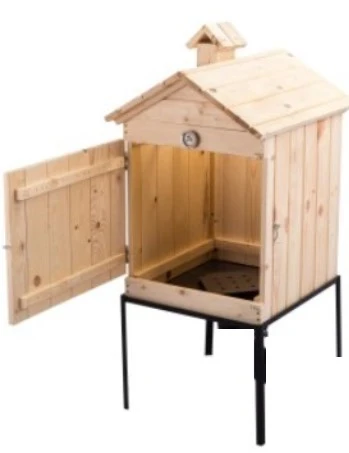 Udírna je vyrobena z borovicového dřeva o tloušťce +-20 mm. Základna udírny má rozměry 501x501 mm. Výška nohou: 400 mm