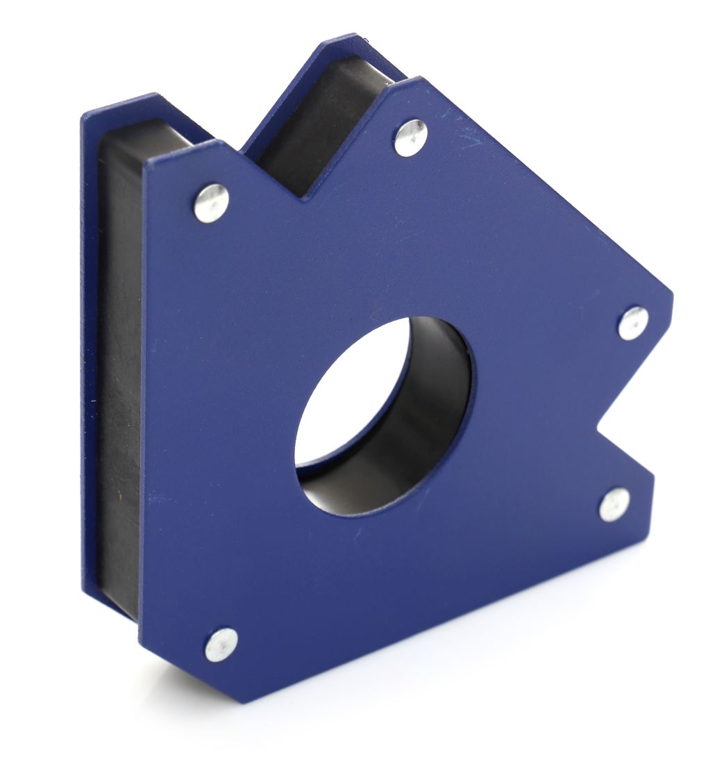 Úhelník užitečný při svařování, montážích kovových prvků, pájení, trasování a případně zvedání ocelových prvků. Silný magnet s velkou plochou obklopený kovovými destičkami, který umožní přesné a trvalé uspořádání materiálu pod úhlem 45, 90 nebo 135 stupňů, a díky velké přitažlivé síle zajistí stabilní, nehybnou pozici.