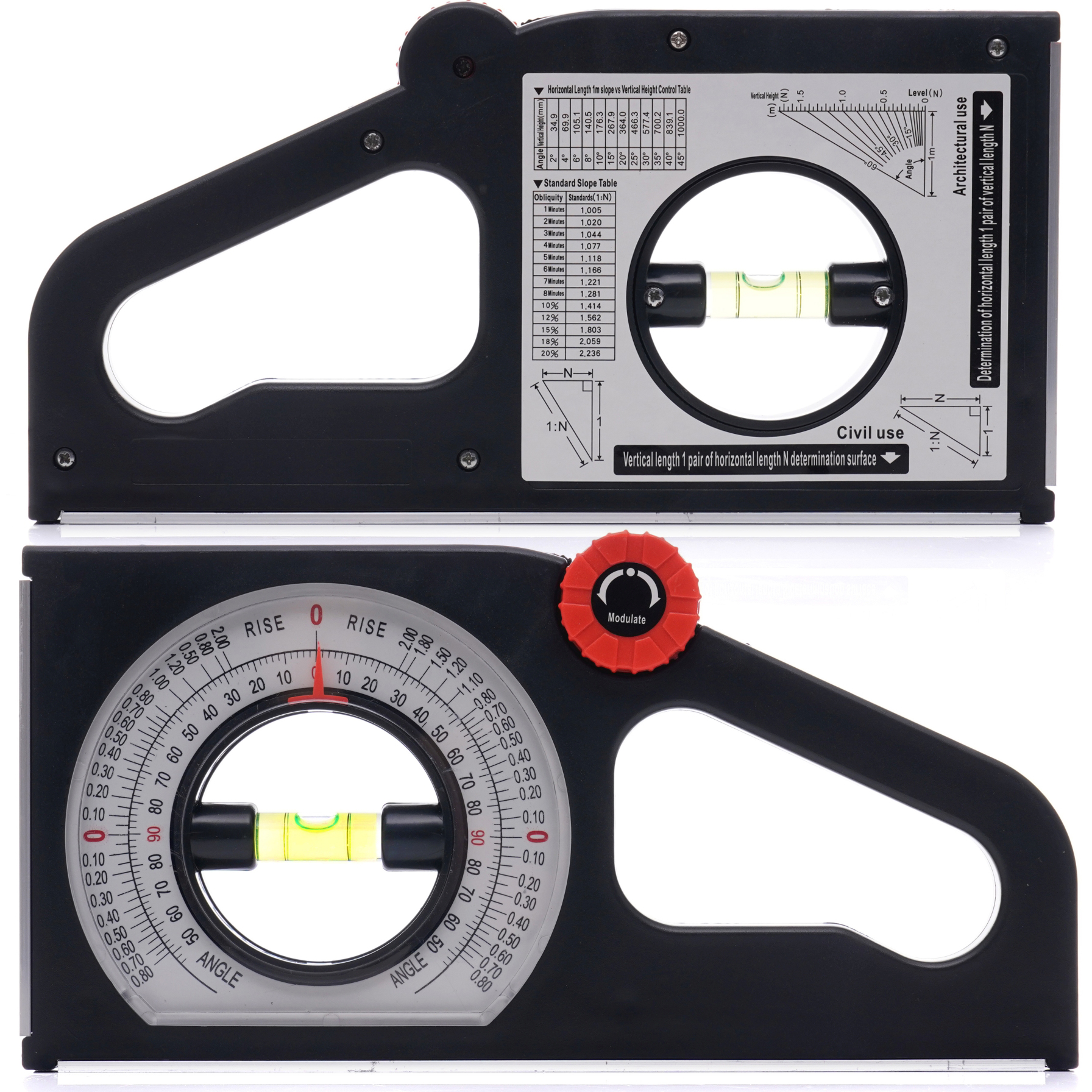 Profesionální úhloměr s libelou pro měření úhlů a sklonu (spádu / stoupání). Přístroj se ideálně hodí při kontrole, montáži, zakládání instalací atd.