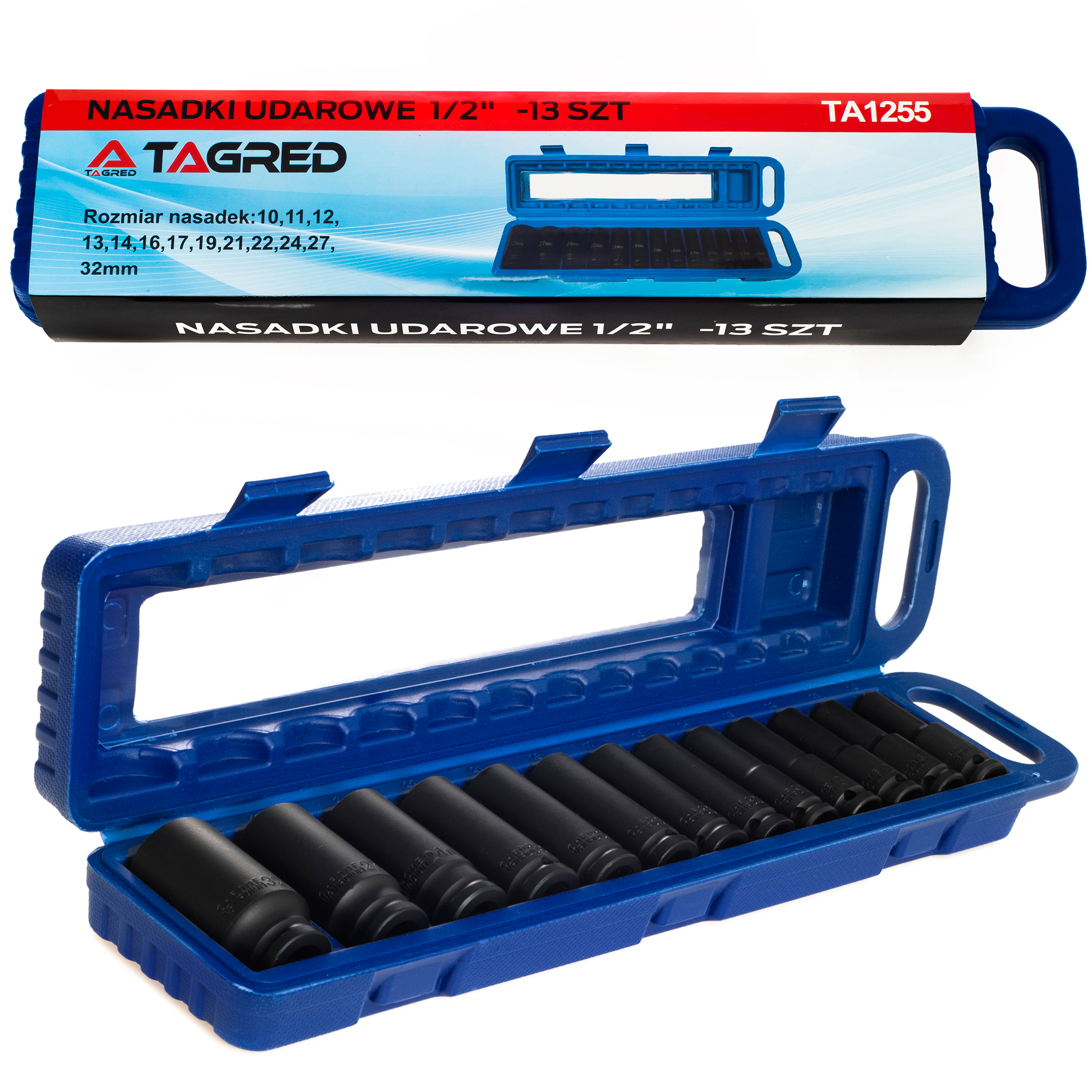 - Nástrčné hlavice rázové, šestihranné, dlouhé 78 mm 1/2", 13 ks. TA1255