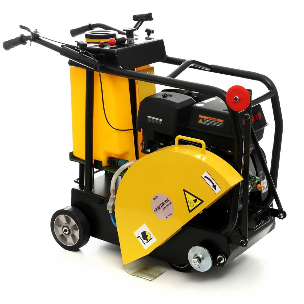 Pila na asfalt a beton od společnosti Kraft&Dele. Zařízení je určeno k řezání asfaltu a betonu v přímé linii. Prezentovaný model je poháněn profesionálním motorem LONCIN 390F. Tato značka je známá pro nejvyšší kvalitu a odolnost svých produktů. Pohon je přenášen pomocí klínových řemenů odolných proti přetížení, které se vyskytují během práce zařízení. Konstrukce pily umožňuje namontovat kotouč o průměru od 350 mm do 500 mm. Pila má kryt chránící před kontaktem s kotoučem během práce a systém chlazení kotouče. Chlazení kotouče probíhá pomocí vody, nádržka pojme 24 l vody. Další výhodou je vodítko umožňující přesně nastavit linie řezu a kontrolovat ji během práce.VLASTNOSTI: - Vysoký výkon - Pohodlná rukojeť - Certifikát shody Parametry: • Model: KD11920 • Středicí otvor kotouče: 2,5 cm (250 mm) • Velikost kotouče: 35 cm, 40 cm, 45 cm, 50 cm • Otáčky: 2950 ot/min • Hloubka řezu: 145 mm • Typ pohonu: manuální • Objem nádrže na vodu: 24 l • Čistá hmotnost: 116 kg Součásti sady: • Pila na asfalt a beton KD11920 • Návod v českém jazyce • • Originální balení • Účet nebo faktura.