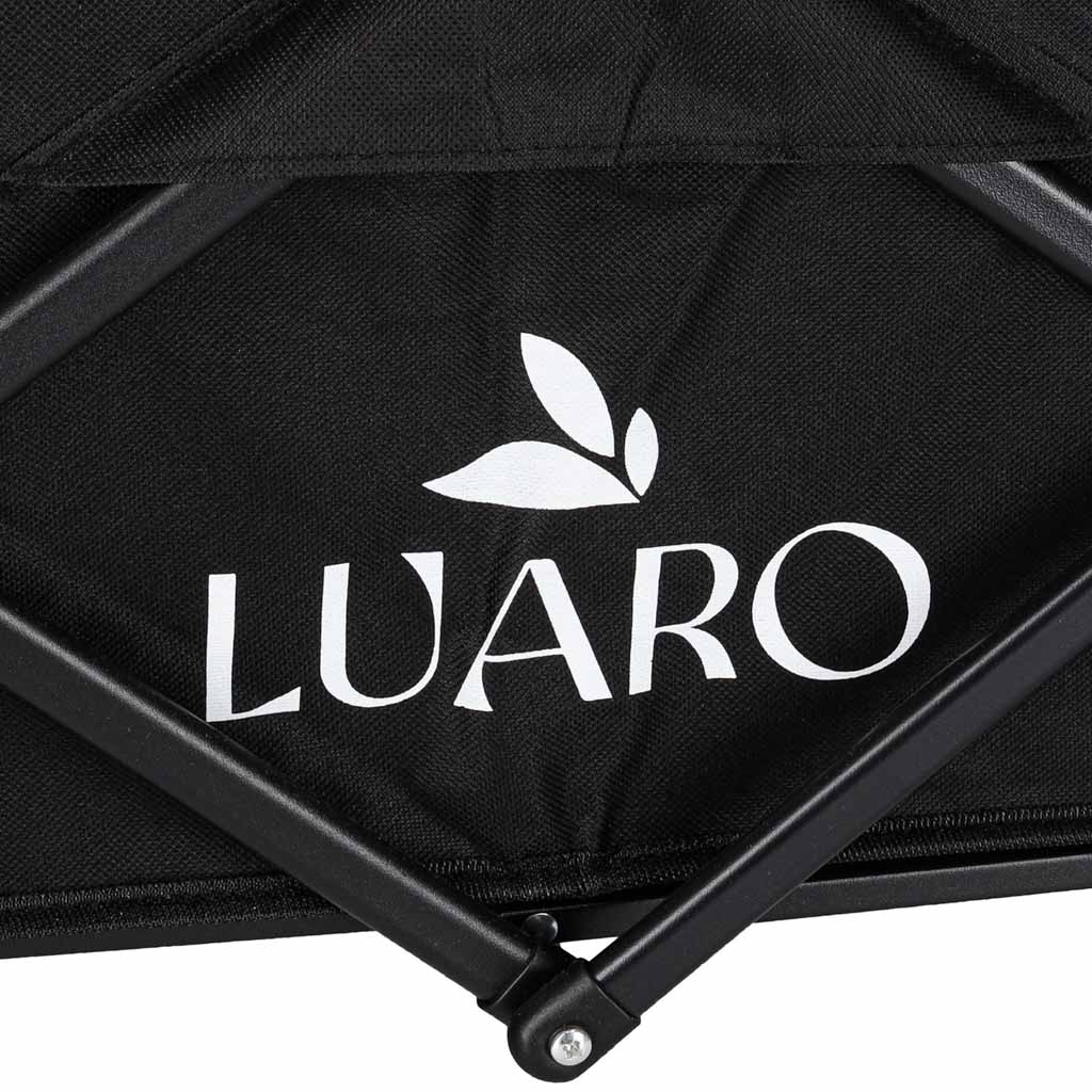 Vozík spočívá na robustním ocelovém rámu s práškovým nástřikem, který unese zatížení až 100 kg.kg. Zesílená tkanina je odolná proti oděru, vlhkosti a intenzivnímu používání - a díky UV nátěru chránícímu před vyblednutím vypadá skvěle i po sezóně.