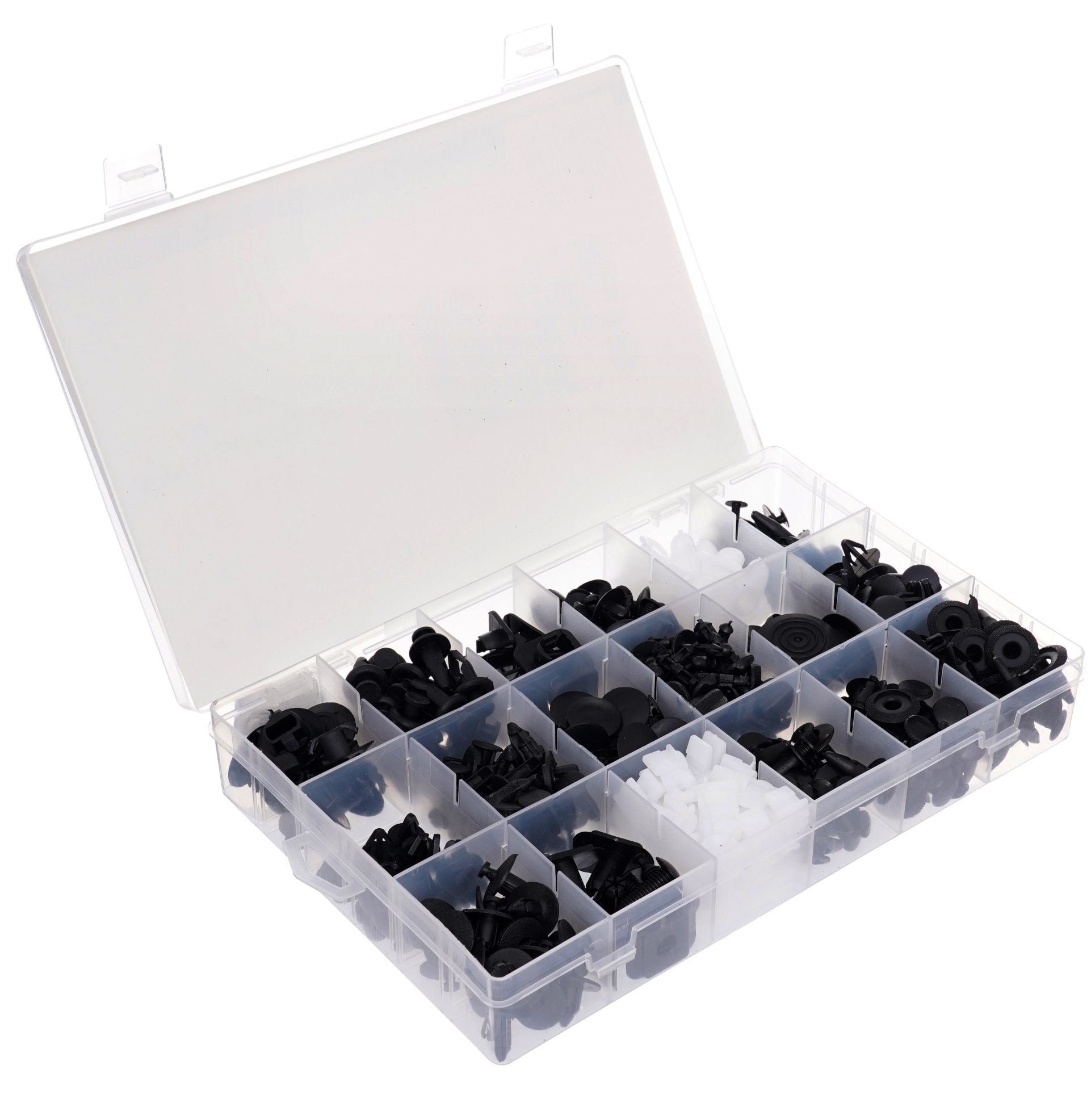 Sada plastových sponek do automobilů značky NISSAN. Balení obsahuje 18 typů sponek, celkem 408 sponek. Vše je zabaleno v krabičce s praktickými přihrádkami.