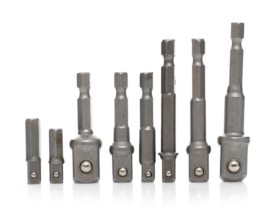 Sada specializovaných redukcí, adaptérů pro šroubovák. Redukce umožňují práci se šroubovákem s nástavci. Prvky sady jsou vyrobeny z nástrojové oceli, která zaručuje jejich odolnost a dlouhou životnost.