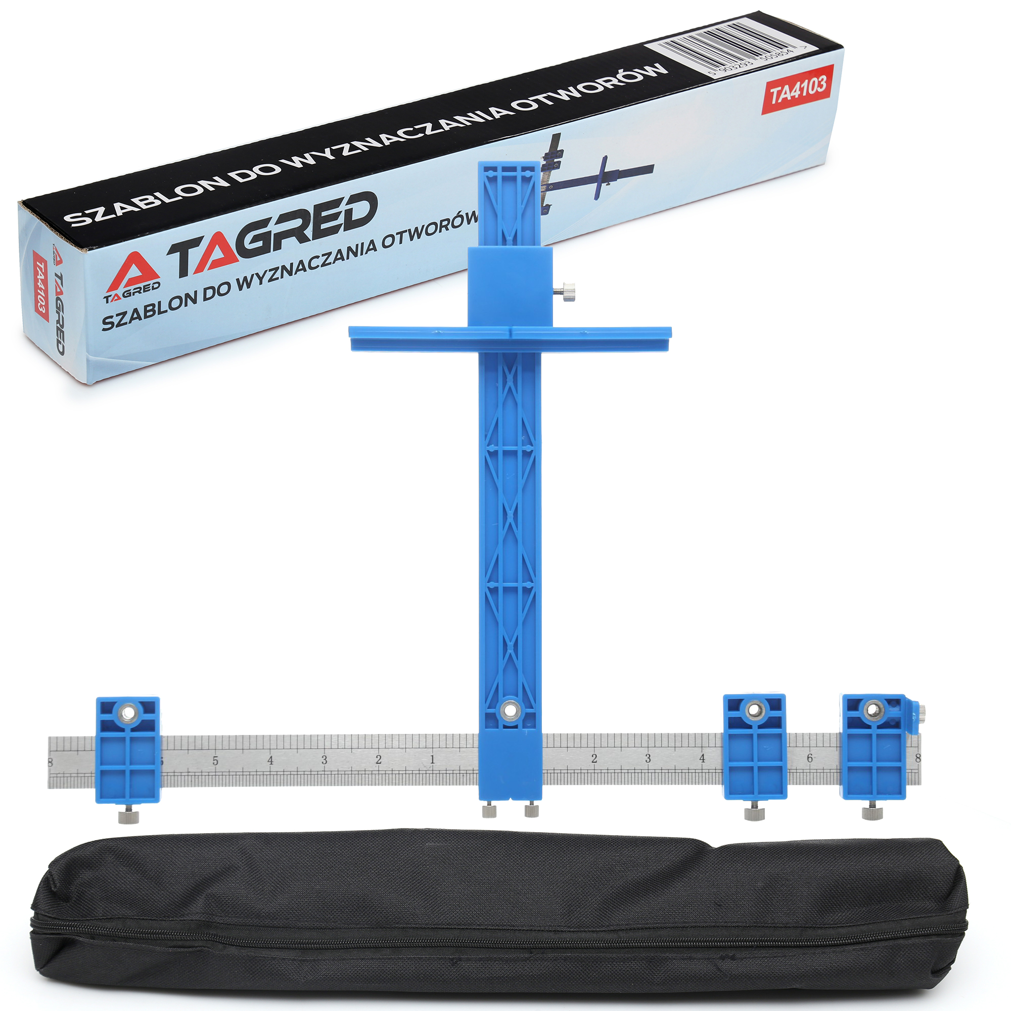 Šablona je určena pro precizní vyznačování bodů, ve kterých budeme vrtat otvory. Současně můžeme vyznačit čtyři otvory v různých vzdálenostech od sebe a zablokováním nastavení provést označení pro otvory v dalším čele. Šablona usnadňuje trasování na různých materiálech, např. dřevě, kovu, plastech atp. Svorka instalovaná na levém konci je vybavena dorazem, který po nastavení do kolmé polohy stabilizuje nástroj ve vodorovné nebo svislé poloze. Každá svorka je vybavena přítlačným šroubem, díky kterému můžeme nastavený rozměr znovu použít na dalším čele/prvku.