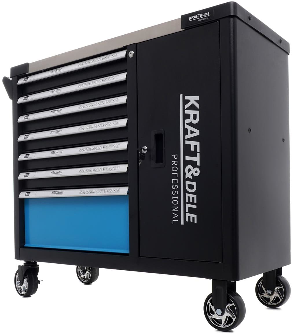 SKŘÍŇKA NA NÁŘADÍ 309 EL.KD1069 TECHNICKÉ PARAMETRY PRODUKTU Značka: KRAFT&DELE Model: KD1069 Počet zásuvek: 7 Rozměry: 1100 x 500 x 860 mm Hmotnost: cca 86 kg POPIS A VLASTNOSTI ZBOŽÍ Skříňka na nářadí Kraft&Dele se symbolem KD1069 je nepostradatelný produkt v každé autoservisní dílně a garáži.Skříňka je vybavena kompletní sadou nářadí, která se skládá až z 309 dílů. Skříňka je vybavena gumovými nárazníky, aby nedošlo k poškození karoserie automobilu při náhodném nárazu. Každá zásuvka má ochranu proti náhodnému otevření a je také uzamykatelná na klíč. Každá ze zásuvek je osazena na ložiskových lištách, díky čemuž je jejich otevírání plynulé, tiché a trvanlivé. Všechny klíče jsou vyrobeny z oceli CrV (chrom-vanadové). OBSAH PRVNÍ ZÁSUVKY: Zásuvky 1/4" (13 kusů): 4;4,5;5;5,5;6;7;8;9;10;11;12;13;14; mm Zásuvky 3/8" (10 kusů): 10;11;12;13;14;15;16;17;18;19; mm Zásuvky 1/2" (17 kusů): 10;11;12;13;14;15;16;17;18;19;20;21;22;24;27;30;32; mm Zásuvky Torx 1/4" (5 kusů): E4;E5;E6;E7;E8 Zásuvky Torx 3/8" (6 kusů): E10;E11;E12;E14;E16;E18 Zásuvky Torx 1/2" (2 kusy): E20;E24 Dlouhé zásuvky 1/4" (7 kusů): 4;5;6;7;8;9;10; mm Dlouhé zásuvky 3/8" (6 kusů): 10;11;12;13;14;15 mm Dlouhé zásuvky 1/2" (5 kusů): 16;17;18;19;22; mm Prodlužovací nástavec 1/4" (2 kusy): 2";4" Prodlužovací nástavec 3/8" (1 kus): 6" Prodlužovací nástavec 1/2" (2 kusy): 5";10" Šroubovák 1/2" pro zásuvky a bity (1 kus): 1/2" Univerzální kloubové hnízdo (3 kusy): 1/4";3/8";1/2" Ráčna (3 kusy): 1/4";3/8";1/2" Flexibilní prodlužovací nástavec 1/4" (1 kus): 6" Knoflík typu T (1 kus): 1/4" Držáky bitů (3 kusy): 1/4";3/8";1/2" Zásuvky pro zapalovací svíčky 3/8" (1 kus): 21 mm Zásuvky pro zapalovací svíčky 1/2" (2 kusy): 16mm;21mm Bity do zásuvek 1/4 "(25 mm) (30 kusů): HW2; HW3; HW4; HW5; HW6;FD4; FD5.5;FD7; PH1; PH2; PH3; PZ1;PZ2;PZ3; T8;T9;T10; T15; T20; T25;T 27; T30; TT8; TT9; TT10; TT15;TT20; TT25; TT27; TT30 Bity (30 mm) (24 kusů): H7; H8; H10; H12; H14; FD8; FD10; FD12; PH3;PH4;PZ3; PZ4; T40; T45; T50; T5.5; T60;T70; TT40; TT45; TT50; TT55; TT60; TT70 Sada bitů (25 mm) (10 kusů): T8;T9;T10; T15; T20; T25;T30; H3; H4; H5 Sada bitů (25 mm) (10 kusů): TT8; TT9; TT10; TT15;TT20; TT25; TT30; FD4; FD 5.5; FD7 OBSAH DRUHÉ ZÁSUVKY: Obsahuje mimo jiné stahováky pružin. Přizpůsobeno pro všechny typy pružin ve sloupcích McPherson a nezávislých pružin. V zásuvce jsou také stahováky ložisek. OBSAH TŘETÍ ZÁSUVKY: Otočný kloubový klíč (5 kusů): 8*9;10*11;12*13;14*15;16*17 mm Plochý oboustranný klíč (8 kusů): 6*7;8*9;10*11;12*13;14*15;16*17;18*18;20*22 mm Očkový zahnutý klíč (8 kusů): 6*7;8*9;10*11;12*13;14*15;16*17;18*18;20*22 mm Plochý očkový klíč (17 kusů): 8;9;10;11;12;13;14;15;16;17;18;19;20;21;22;24;27 mm OBSAH ČTVRTÉ ZÁSUVKY: Šroubováky (12 kusů): SL6*38 mm; 3*75 mm; 5*100 mm; 6*100mm; 6*150 mm;8*150mm | PH2 *38 mm; PH0*75mm;PH1*80mm; PH2*100mm;PH2*150mm;PH3*150mm Izolované šroubováky (6 kusů): SL3*75mm; SL4*100mm; SL5.5*125mm; PH0*75mm;PH1*100mm;PH2*100mm Precizní šroubováky (7 kusů): SL 2;2.5;3mm; PH000;PH00;PH0;T5 OBSAH PÁTÉ ZÁSUVKY: Kleště na pásky s otočnými čelistmi (1 kus) Kleště na upínací pásky s lankem (1 kus) Zahnuté kleště na upínací pásky (1 kus) Kleště typu CLIC I CLIC-R (1 kus) Kleště na pásky s otočnými vroubkovanými čelistmi (1 kus) Kleště na úzké pásky (1 kus) Kleště-stahovák na hadice Šroubovák Speciálně profilovaný, zahnutý hrot OBSAH ŠESTÉ ZÁSUVKY: Sada na pístky brzdových třmenů (28 kusů) Knoflík levý, pravý (2 kusy) Vybíječe 3 mm, 5 mm (2 kusy) Klíč na brzdové třmeny (2 kusy) Kloub CV - vhodné pro Alfa romeo, Audi, Austin BMW, Citroen, Ford, General Motors, Honda, Jaguar, Mazda, Mercedes, Mitsubishi, Nissan, Opel, Renault, Ronver, Saab, Toyota, Subaru a Volkswagen (1 kus) OBSAH SEDMÉ ZÁSUVKY: Kleště na pojistné kroužky seger (4 kusy): 7" Mini zahnuté kleště (1 kus): 5" Mini univerzální kleště (1 kus): 5" Mini dlouhé kleště (1 kus): 5" Mini úhlové kleště (1 kus): 5" Univerzální kleště (1 kus): 6" Kombinačky prodloužené (1 kus): 6" Kleště na stříhání (1 kus): 6" Upínací kleště Morse (1 kus): 10" Nastavitelné kleště (1 kus): 10" Kladivo 250g SLOŽENÍ SADY: Skříň na nářadí 309el. KD1069 Originální balení Účet / Faktura Záruka Nákupem u nás kupujete zboží přímo od výrobce! Na naše zařízení poskytujeme záruku 12 měsíců, realizovanou v našem servisu. Máme databázi dílů pro naše zařízení.