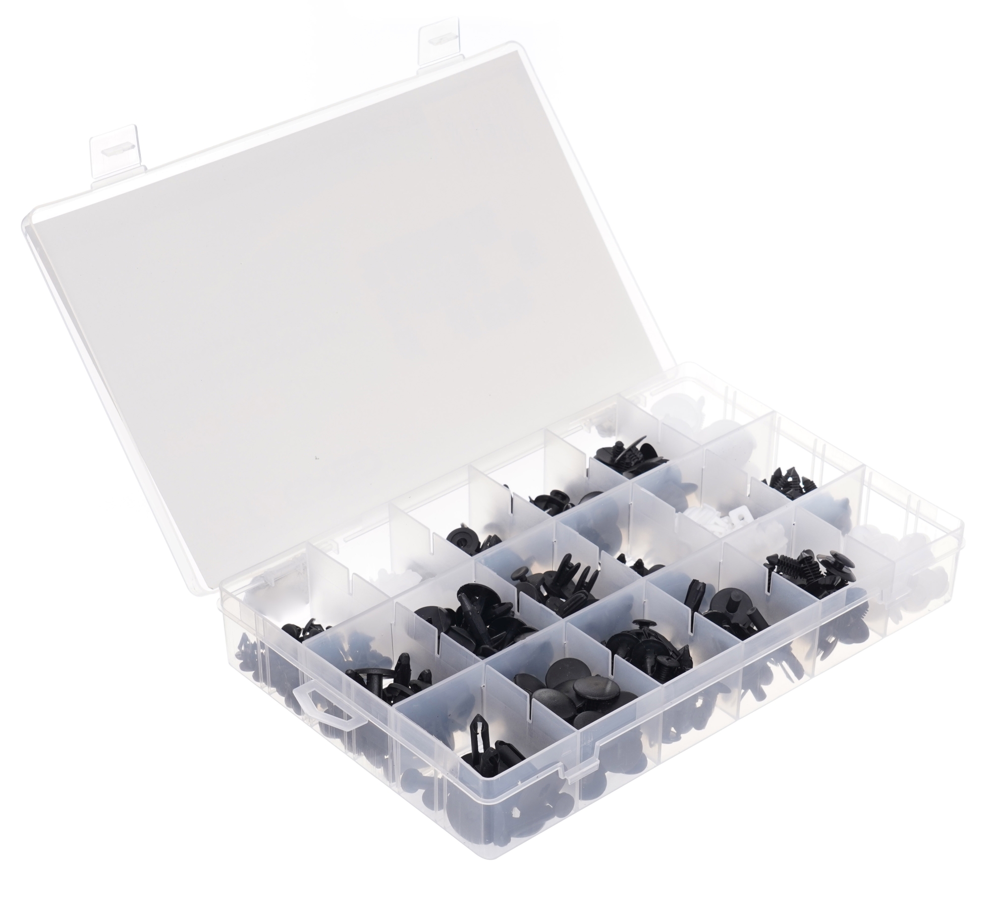 Sada plastových sponek do automobilů značky FORD. Balení obsahuje 18 typů sponek, celkem 415 sponek. Vše je zabaleno v krabičce s praktickými přihrádkami.