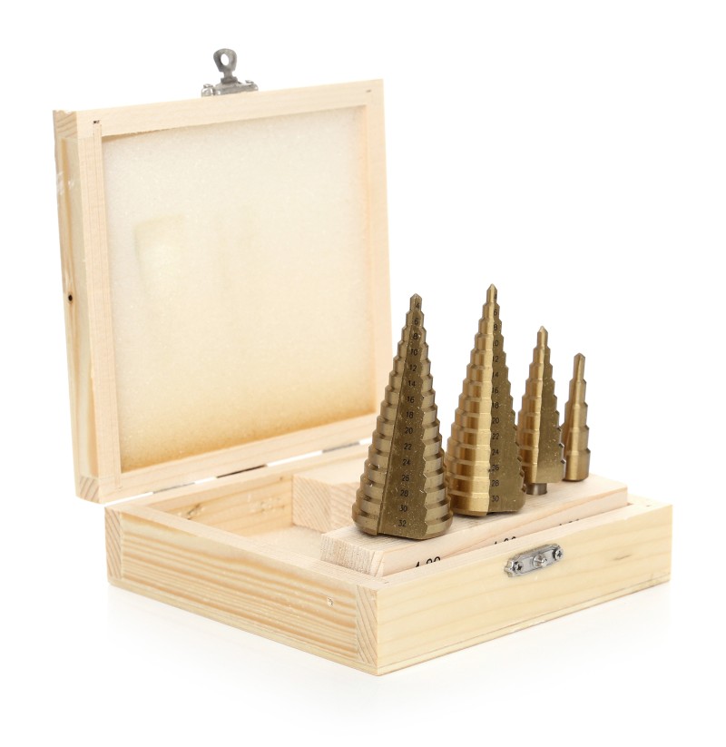 Stupňovitý kuželový vrták sada vrtáků 4ks v kazetě 4-32mm