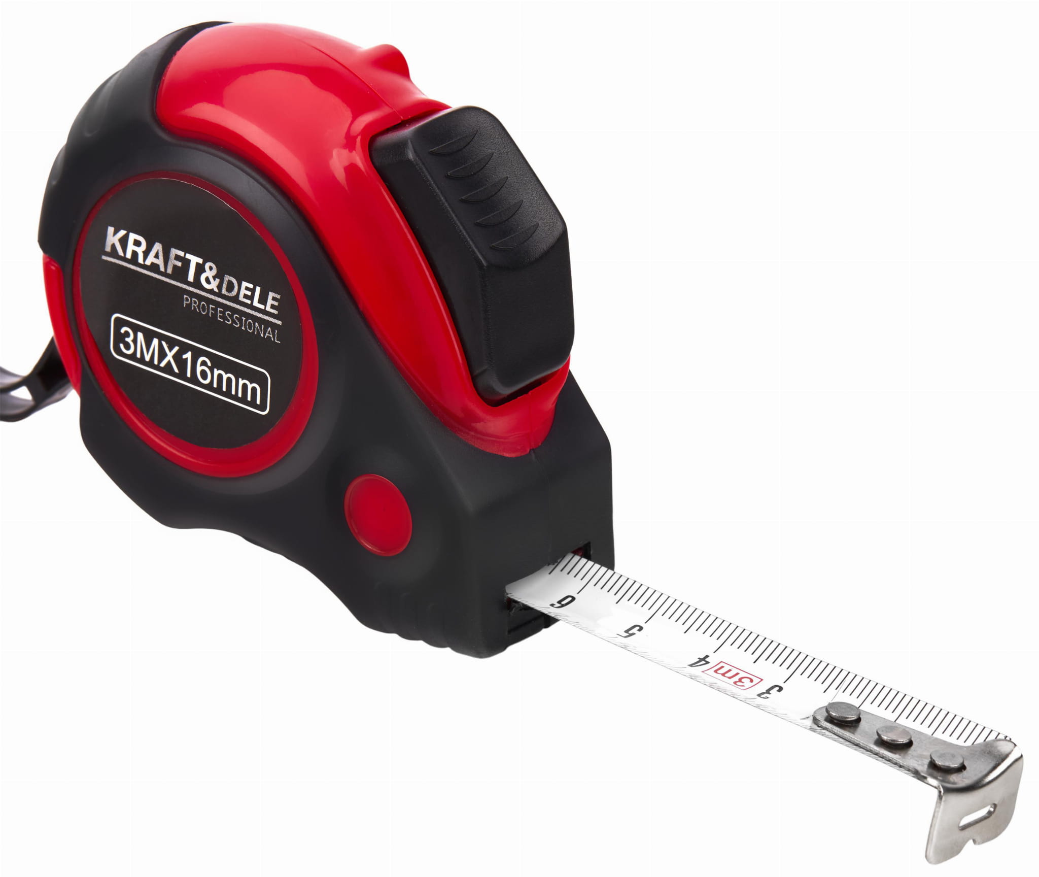 SVINOVACÍ METR - METR 3 METRY TECHNICKÉ PARAMETRY PRODUKTU Značka: KRAFT&DELE Model: KD10291 Typ nástroje: svinovací metr Rozměry: 3M x 16mm Protiskluzová rukojeť: ANO Automatický zámek pásky: ANO POPIS ZBOŽÍ Profesionální svinovací metr polské značky Kraft&Dele. K dispozici ve variantách lišících se délkou a šířkou metru.Nástroj je vybaven systémem automatického zámku pásky; po stisknutí spouště se zámek uvolní a páska se samovolně svine.Metr je opatřen protiskluzovým gumovým povrchem, který zajišťuje dobrý úchop za všech pracovních podmínek. Páska je vyrobena z oceli.