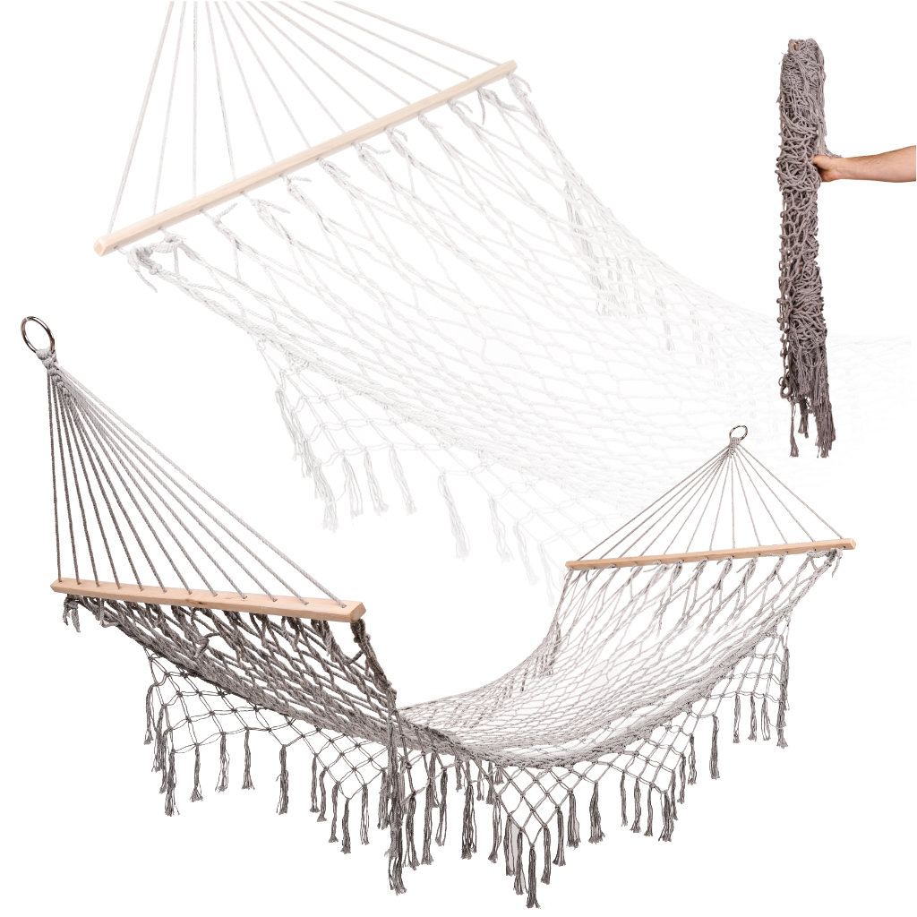 stylový boho design - Béžová barva a visící střapce dodávají houpací síti jedinečný, útulný vzhled, který bude nejen místem k odpočinku, ale také ozdobou zahrady nebo terasy.